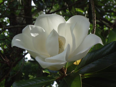 A few days ago I was standing at my bedroom window, admiring the amazing Magnolia Grandiflora tree in the front yard which is about 10m high and wide! It is an amazing tree and is currently flowering. The flowers don't seem to last long, but they are splendid!